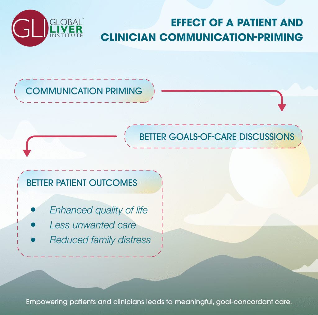 Patients with chronic liver disease often face a lifelong path of decisions about their care throughout their lives. These patients stand to benefit greatly from clear, intentional conversations that help them identify their priorities and make informed decisions — even early in the treatment journey. Conversations about goals of care have several benefits, including increased quality of life, increased quality of dying, reduced intensity of care at the end of life, and reduced distress among family. Unwanted interventions can be avoided, and relationships between patients and their care teams are strengthened. Additionally, palliative care is recommended by AASLD as part of routine care, but misunderstanding from both clinicians and patients stops patients from benefitting from this valuable tool.